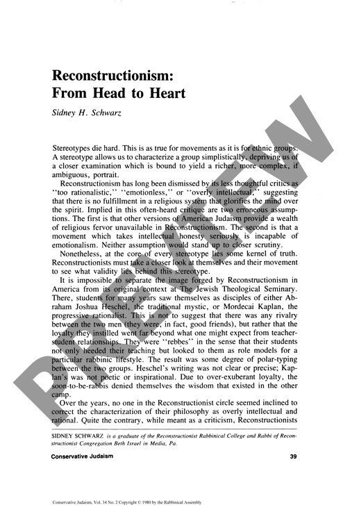 Recontructionism: From Head to Heart