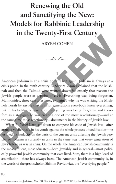 Renewing the Old and Sanctifying the New: Models for Rabbinic Leadership in the Twenty-First Century