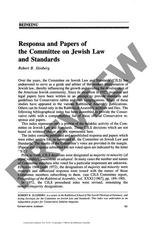 Responsa and Papers of the Committee on Jewish Law and Standards
