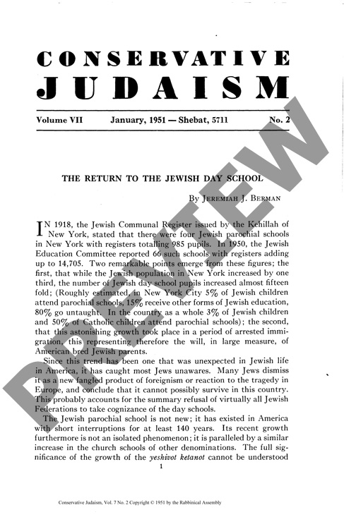 The Return to the Jewish Day School