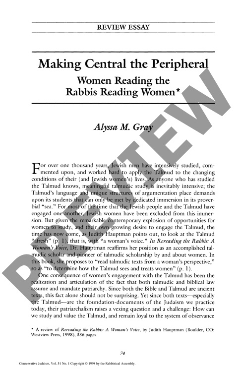 Review Essay: Making Central the Peripheral: Women Reading the Rabbis Reading Women