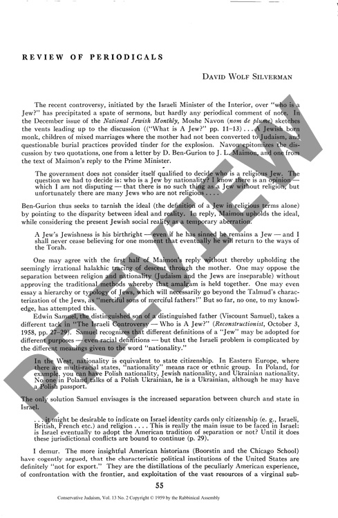 By David Wolf Silverman for CJ vol. 13 no. 2, Winter 1959