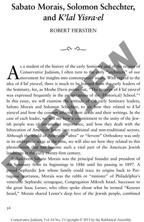 Sabato Morais, Solomon Schechter, and K’lal Yisra'el