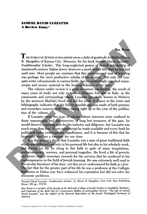 Samuel David Luzzatto: A Review Essay