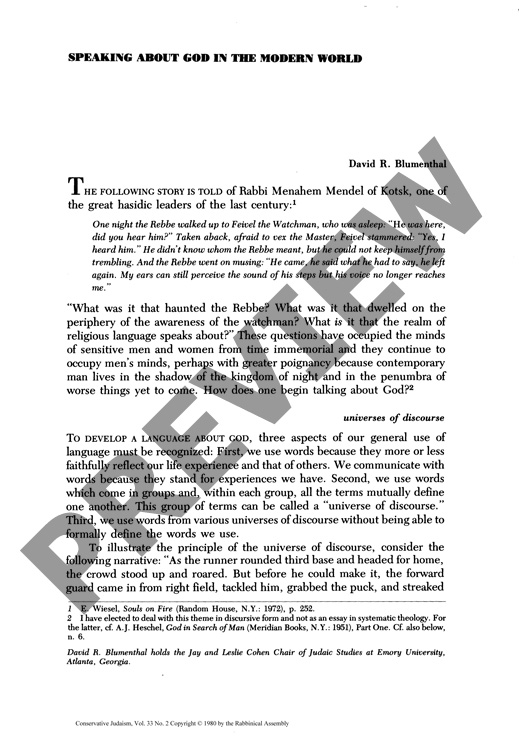By David Blumenthal for CJ vol. 33 no. 2, Winter 1980