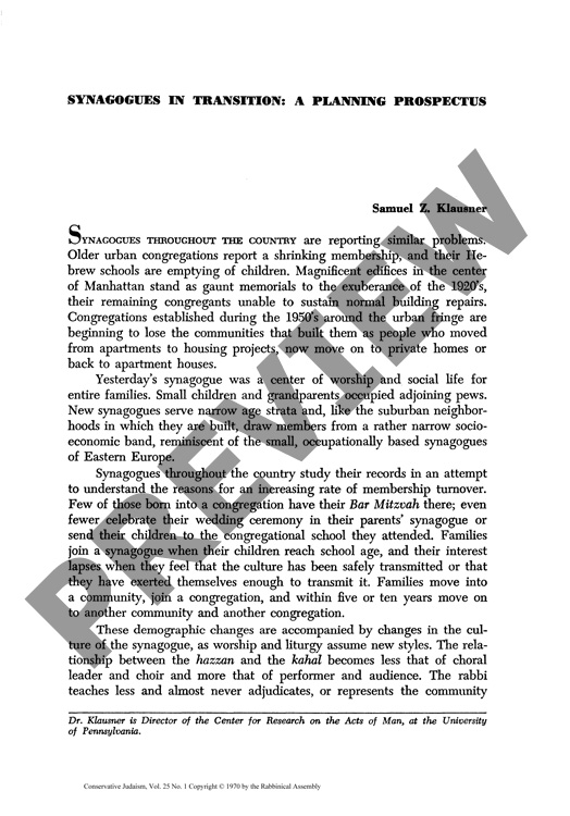 By Samuel Klausner for CJ vol. 25 no. 1, Fall 1970