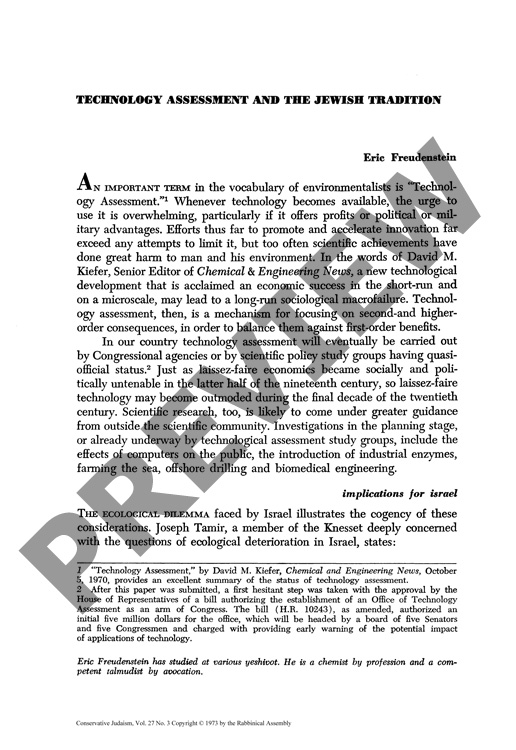 Technology Assessment and the Jewish Tradition