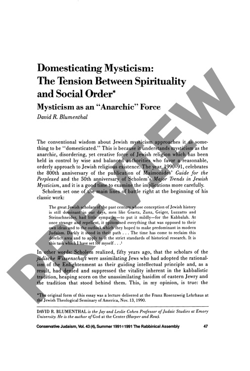 By David Blumenthal for CJ vol. 43 no. 4, Summer 1991