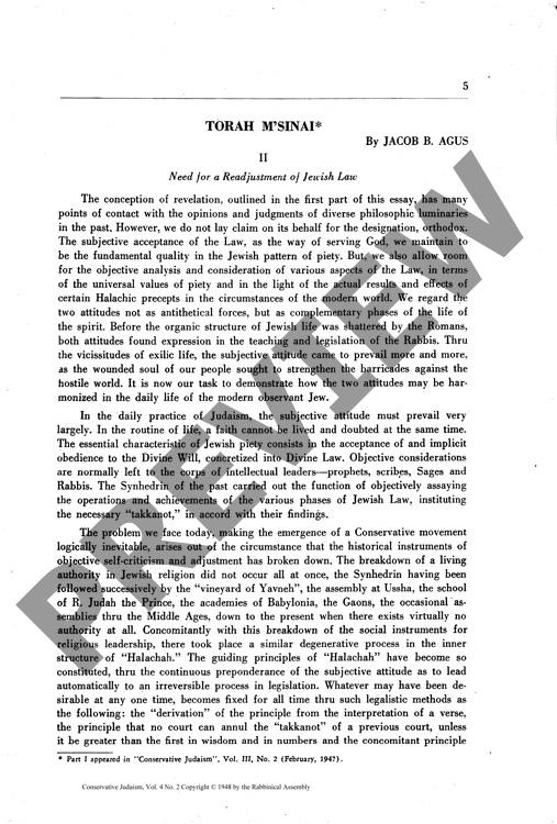By Jacob Agus for CJ vol. 4 no. 2, February 1948