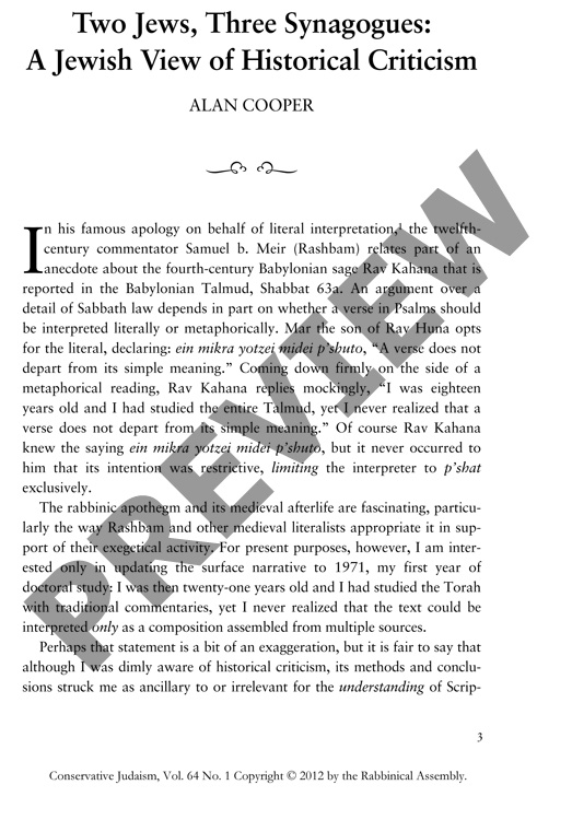 Two Jews, Three Synagogues: A Jewish View of Historical Criticism