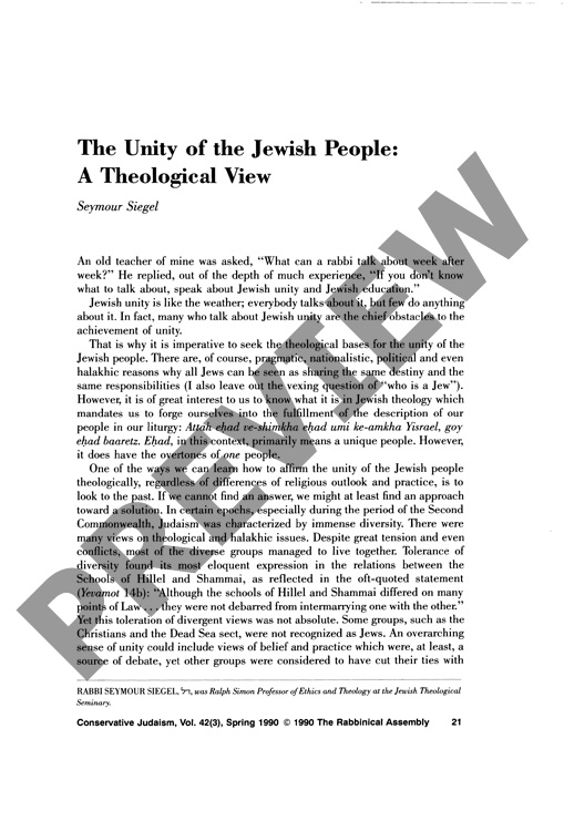 The Unity of the Jewish People: A Theological View