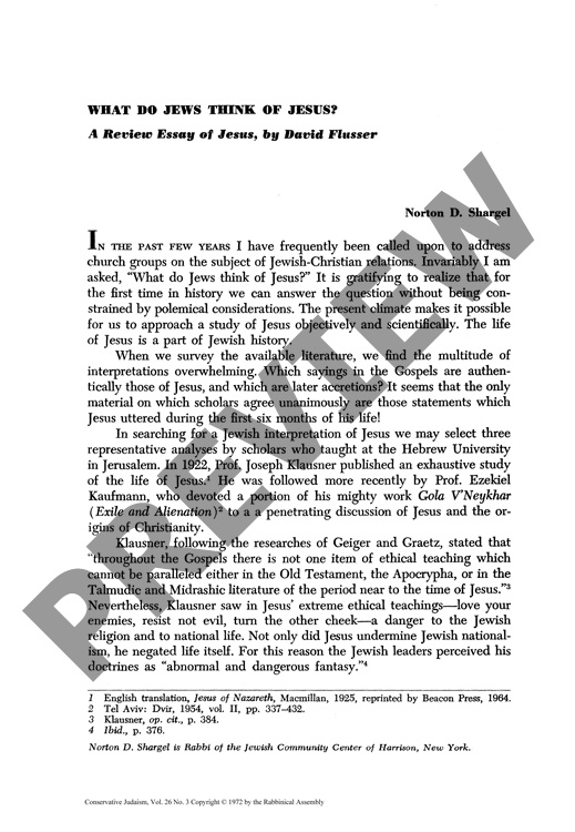 What do Jews Think of Jesus: A Review Essay of Jesus