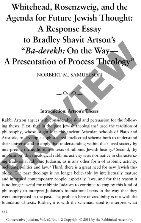 Whitehead, Rosenzweig, and the Agenda for Future Jewish Thought: A Response Essay to Bradley Shavit Artson