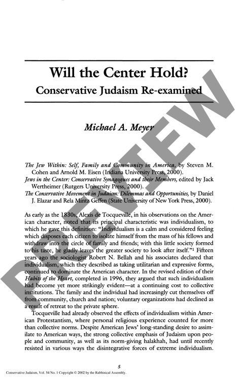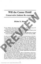 Will the Center Hold? Conservative Judaism Re-examined
