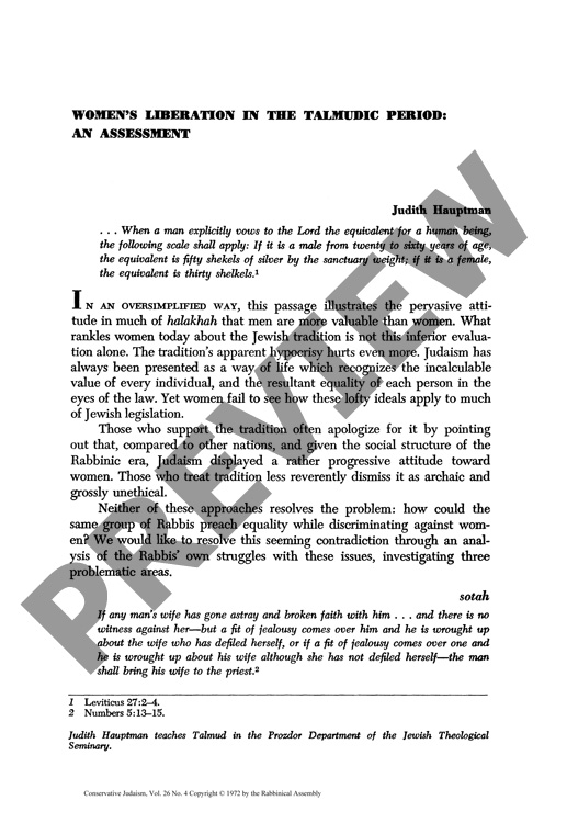 By Judith Hauptman for CJ vol. 26 no. 4, Summer 1972