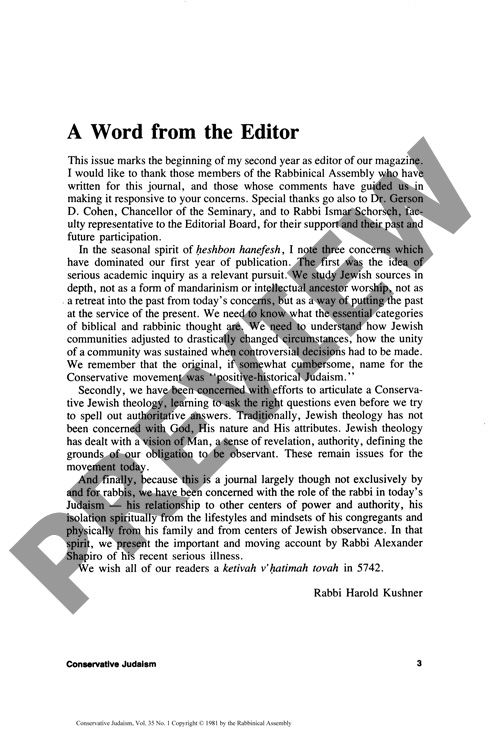 By Harold S. Kushner for CJ vol. 35 no. 1, Fall 1981
