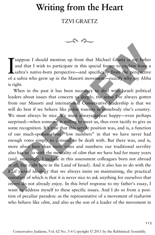 By Tzvi Graetz for CJ vol. 62 no. 3-4, Spring-Summer 2011