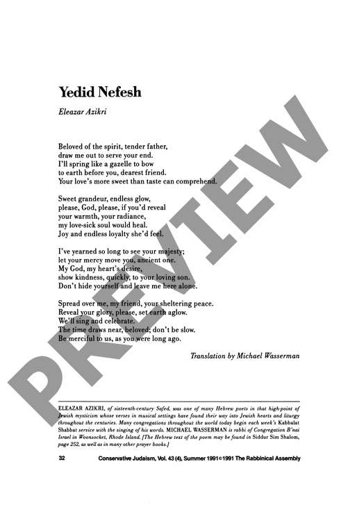 Yedid Nefesh: Poem