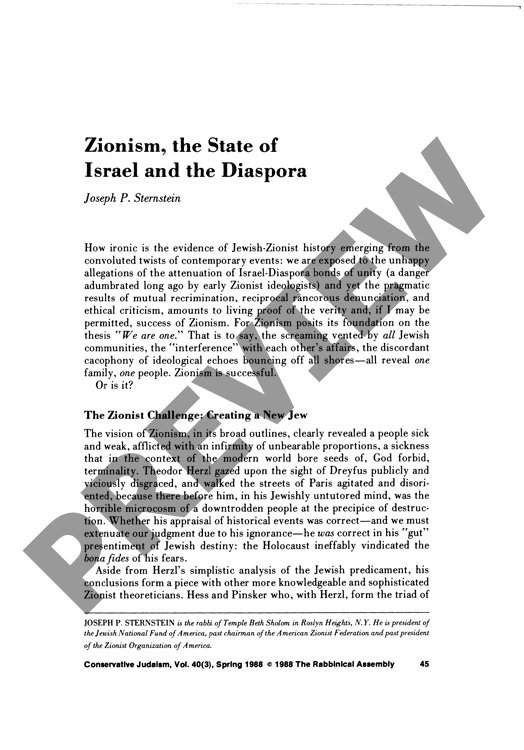 Zionism, the State of Israel and the Diaspora
