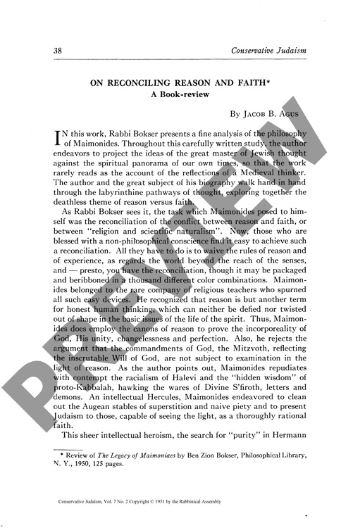 By Jacob Agus for CJ vol. 7 no. 2, January 1951