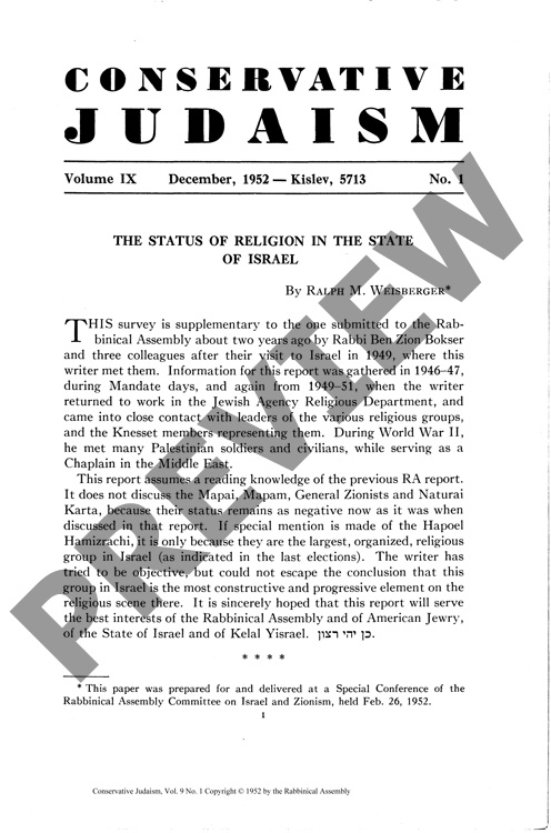 The Status of Religion in the State of Israel
