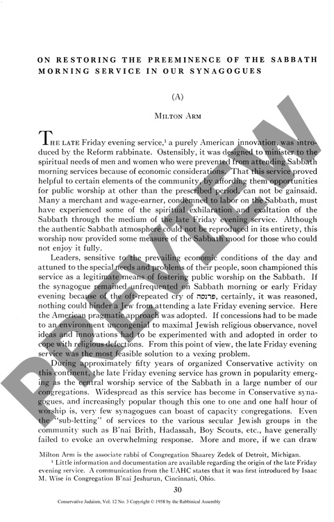 On the Restoring the Preeminence of the Sabbath Morning Service in Our Synagogues