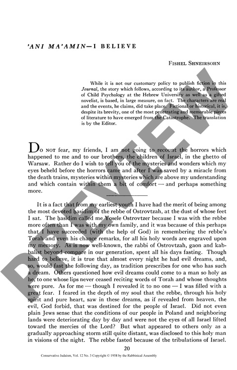 By Fishel Shneirsohn for CJ vol. 12 no. 3, Spring 1958