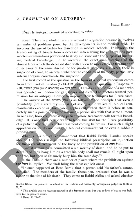 By Isaac Klein for CJ vol. 13 no. 1, Fall 1958