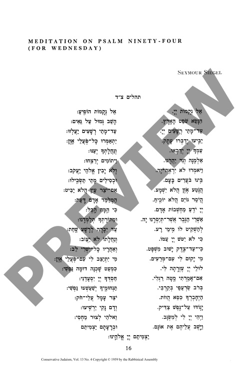 By Seymour Siegel for CJ vol. 13 no. 4, Summer 1959