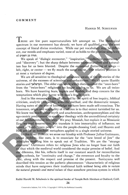 By Harold M. Schulweis for CJ vol. 14 no. 1, Fall 1959
