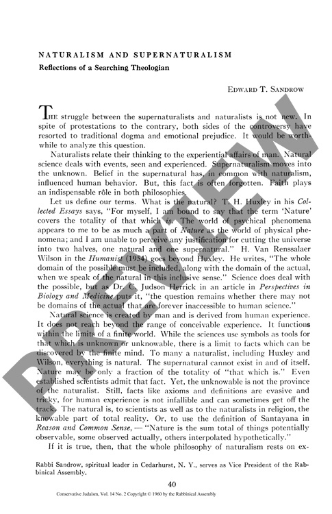 Naturalism and Supernaturalism: Reflections of a Searching Theologian