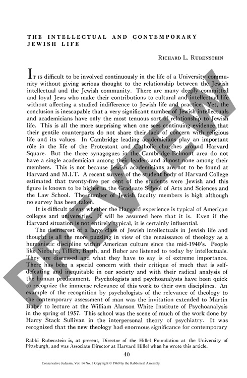 The Intellectual and Contemporary Jewish Life