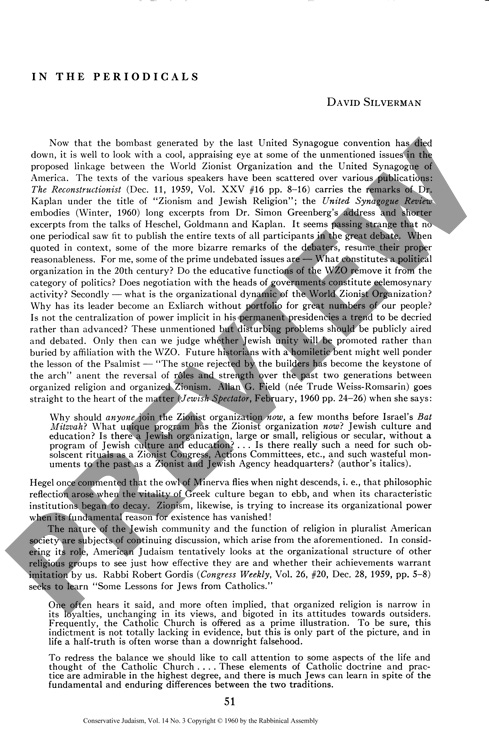 By David Wolf Silverman for CJ vol. 14 no. 3, Spring 1960