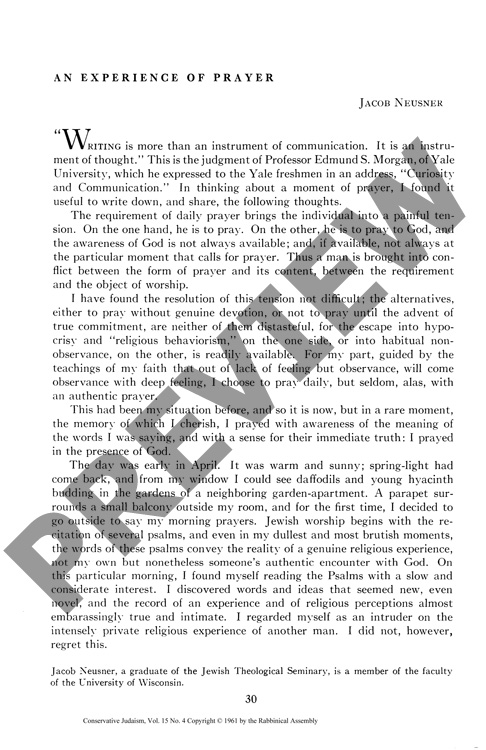 By Jacob Neusner for CJ vol. 15 no. 4, Summer 1961
