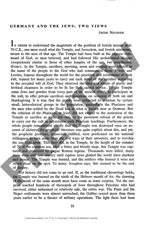 By Jacob Neusner for CJ vol. 17 no. 1-2, Fall 1962