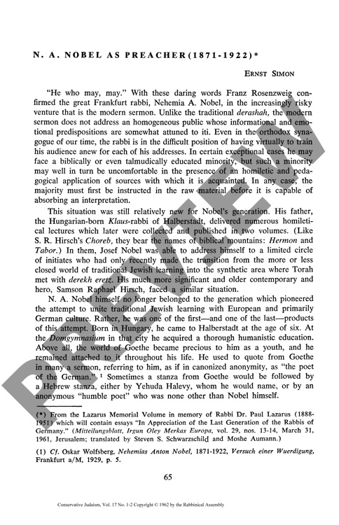 By Ernst Simon for CJ vol. 17 no. 1-2, Fall 1962