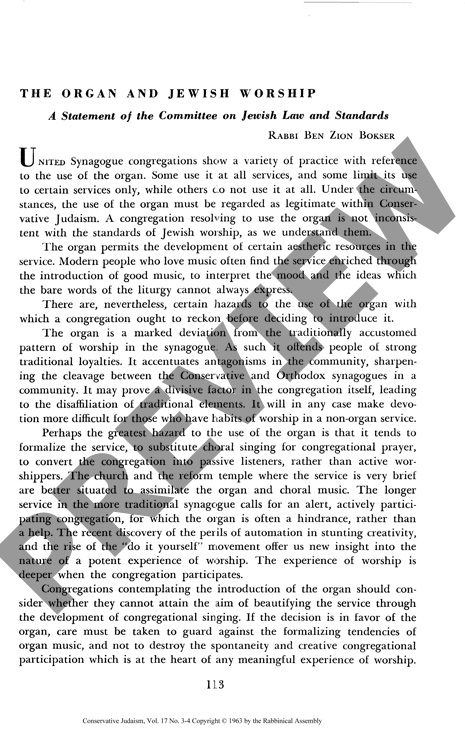 The Organ and Jewish Worship: A Statement of the Committee on Jewish Law and Standards