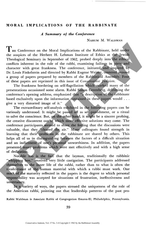 Moral Implications of the Rabbinate: A Summary of the Conference