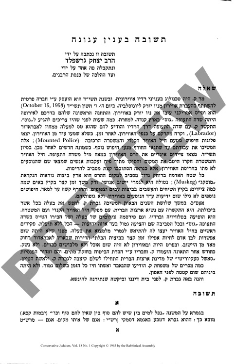 T'shuvah B'Inyan Agunah