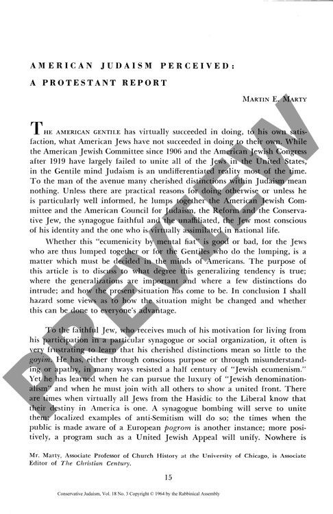 American Judaism Perceived: A Protestant Report