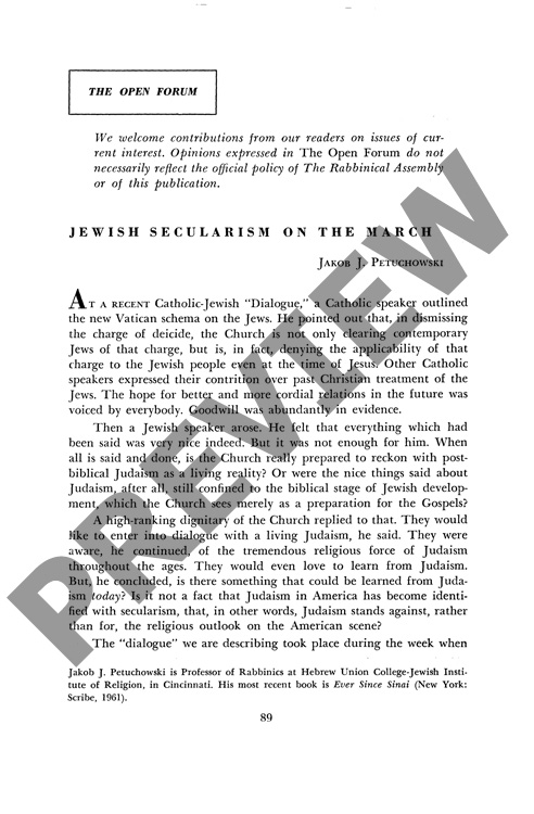 By Jakob Petuchowski for CJ vol. 19 no. 3, Spring 1965