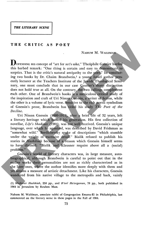 By Nahum Waldman for CJ vol. 19 no. 3, Spring 1965