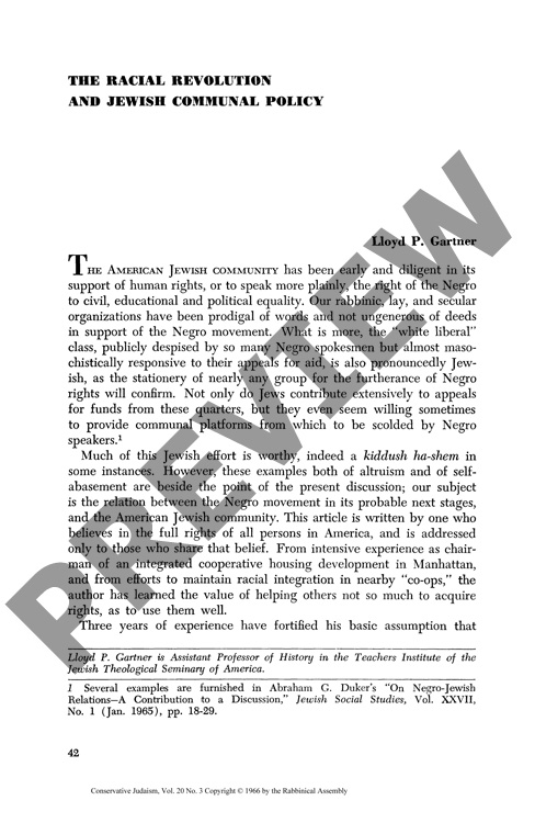 By Lloyd Gartner for CJ vol. 20 no. 3, Spring 1966