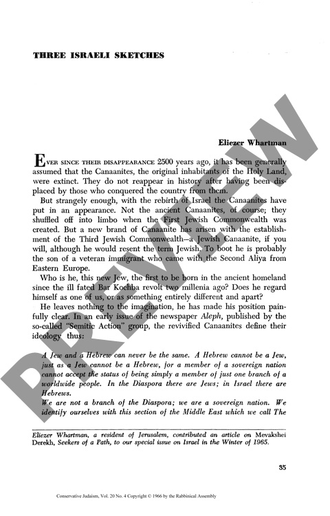By Eliezer Whartman for CJ vol. 20 no. 4, Summer 1966