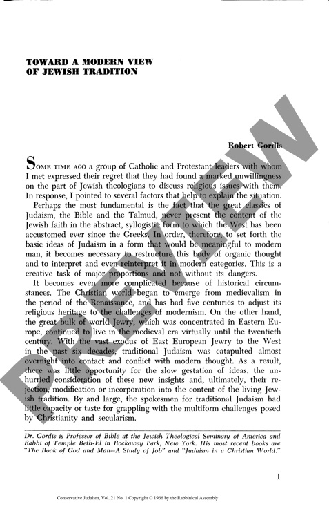 Toward a Modern View of Jewish Tradition