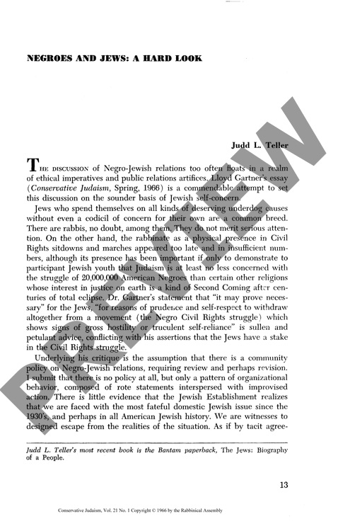 Negroes and Jews: A Hard Look