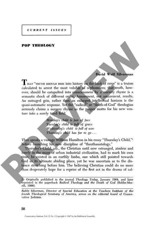 By David Wolf Silverman for CJ vol. 21 no. 2, Winter 1967