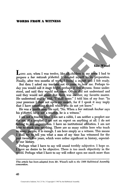 By Elie Wiesel for CJ vol. 21 no. 3, Spring 1967