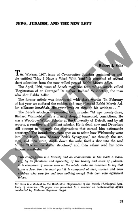 By Robert Saks for CJ vol. 21 no. 4, Summer 1967