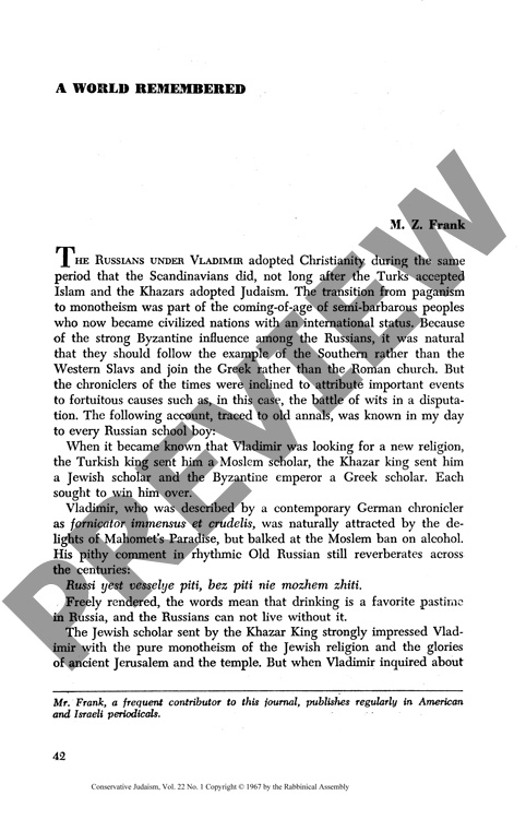 By M. Z. Frank for CJ vol. 22 no. 1, Fall 1967